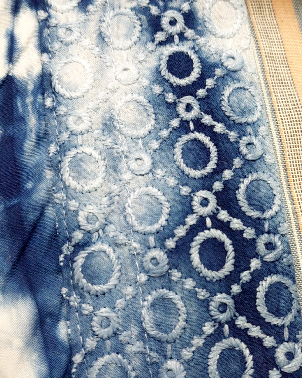 - Hand stamped batik, hand dyed jumputan/tie dye, ecoprint and hand weave fabric/tenun for removable panel
