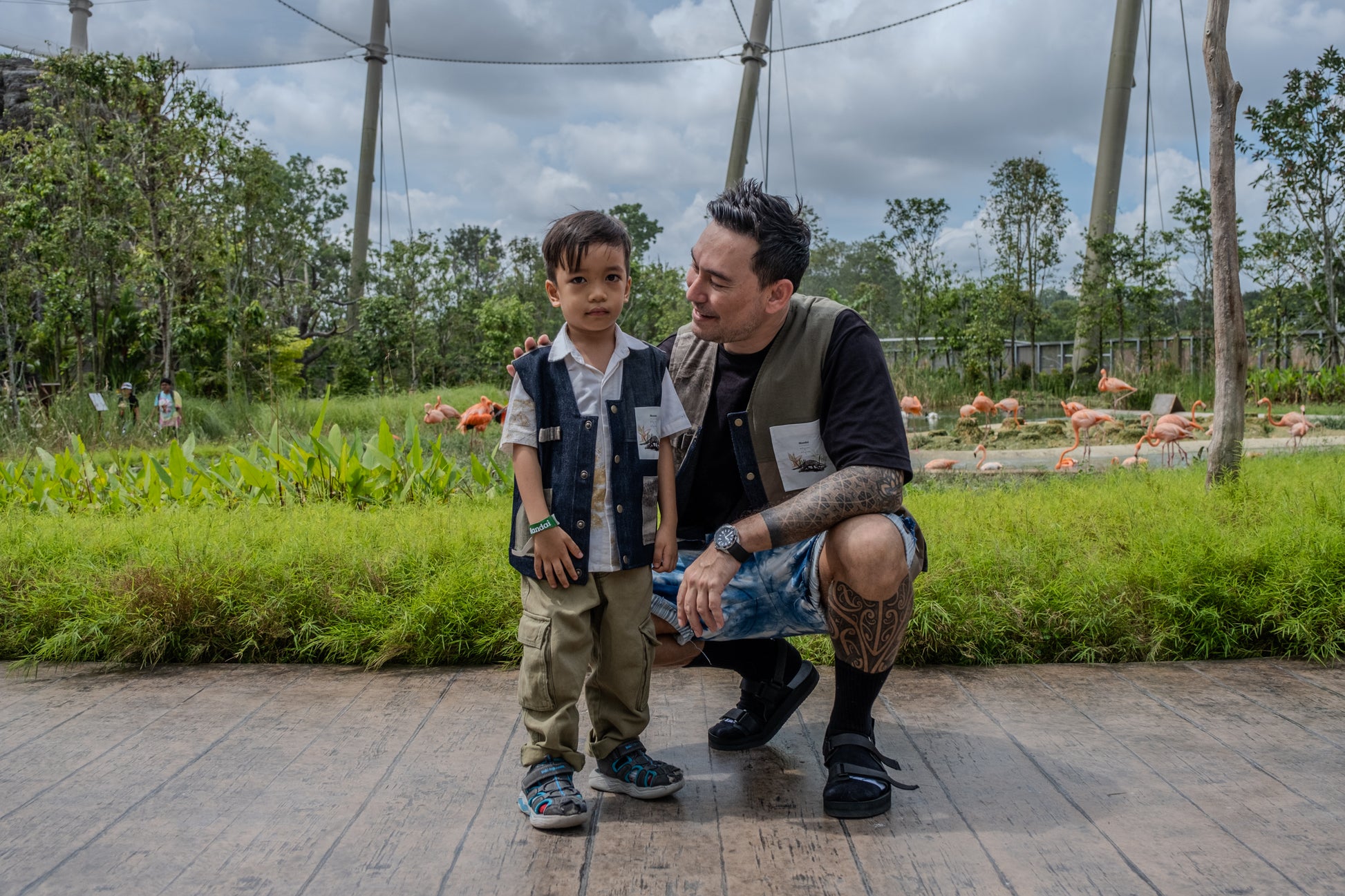 Front button vest. Reversible Ecoprint and denim vest with Mandai animal sketches pockets, also detachable pockets, allowing you to customize their placement to suit your needs.